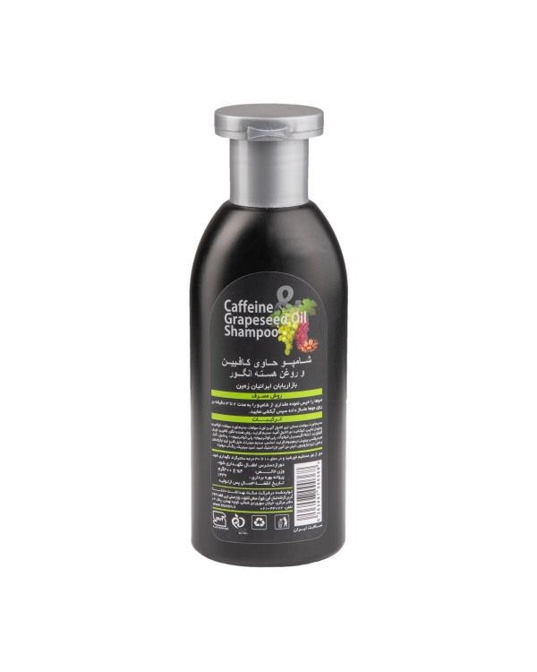 شامپو حاوی کافئین و روغن هسته انگور بیز به دلیل داشتن کافئین موجود در شامپو باعث افزایش گردش خون شده و در نتیجه از ریزش مو جلوگیری می کند.